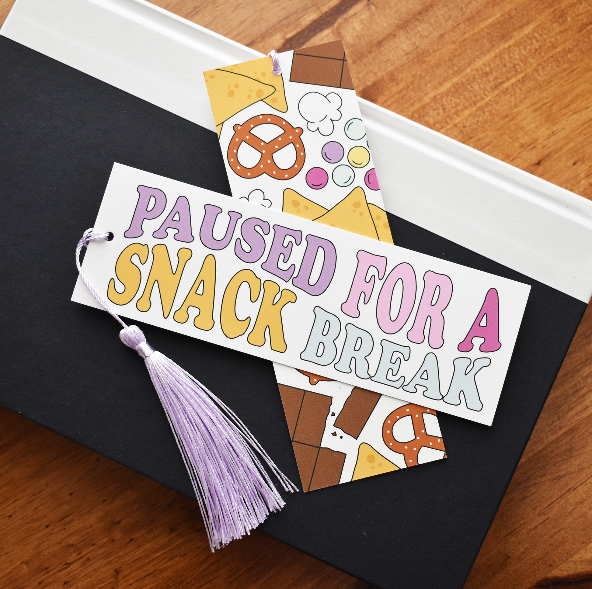 Save your place and grab a snack! This bookmark is two sided - "Time For A Snack Break" on one side and a pile of snacks on the other - to help you keep track of what page you're on!