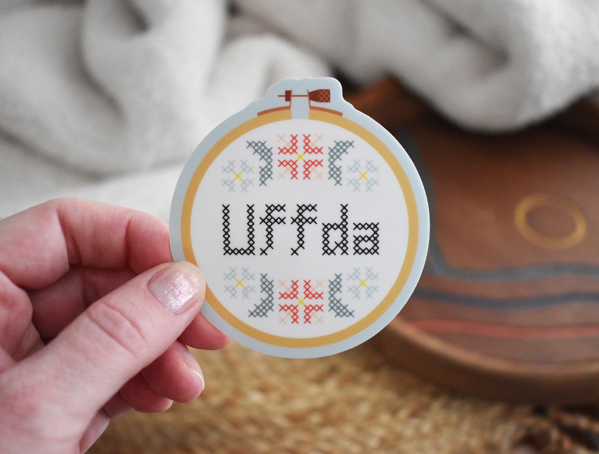 This little Uffda embroidery hoop sticker will remind you of your sweet midwestern grandma, or it'll show how you feel every time that one coworker sends you an unnecessary email.
